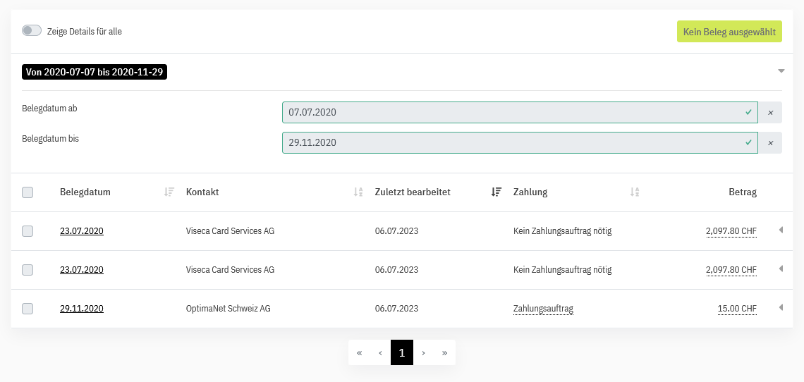 Wir haben die Standardfilter für die "Belege" Ansicht überarbeitet. Was sich geändert hat: