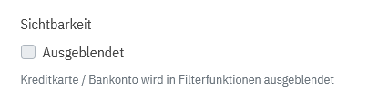 - Nicht mehr benötigte Kreditkarten oder Bankkonten können neu als unsichtbar markiert werden, via Einstellungen -> Kreditkarten oder Bankkonten.