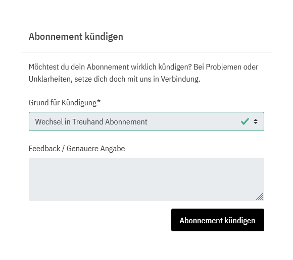 - Solltest du dein Abonnement kündigen, kannst du uns neu mitteilen weshalb