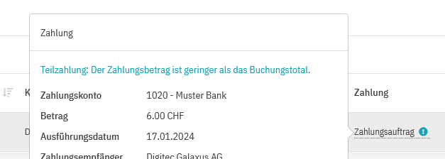 Am sofort informieren wir dich automatisch beim Export, falls deine Zahlungsaufträge eine Teilzahlung des Beleg-Betrages sind. Somit fällt es dir einfacher zu erkennen, wenn vielleicht der QR-Code einen anderen Betrag beeinhaltet hat als die Rechnung.